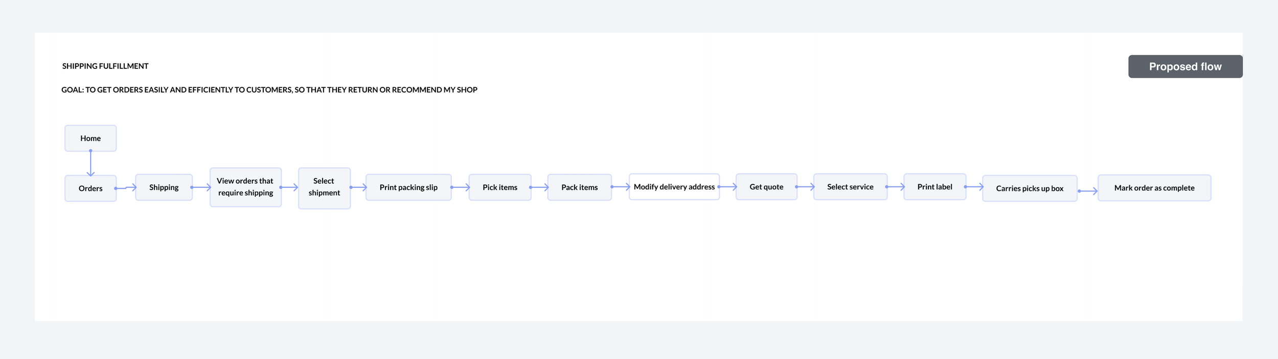 Order fulfillment has its own demands - it would live alongside old existing components and flows that we could not change. We could not do much in UI improvement, but we could offer merchants incredible value by allowing them to ship and track their orders without leaving the system.